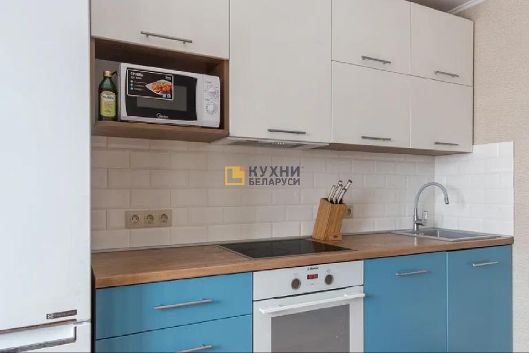 Гарнитур выполнен в современном стиле. Прямые формы, матовая поверхность, ручки-рейлинги и отсутствие декора придают ему особую легкость. Палитра двухцветная: цвет слоновой кости и глубокий голубой. Такие оттенки создают домашний уют и теплую атмосферу.