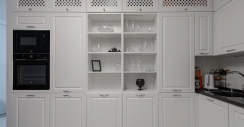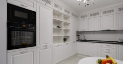 - Ниши для встроенной техники и дополнительные закрытые ниши под потолком.