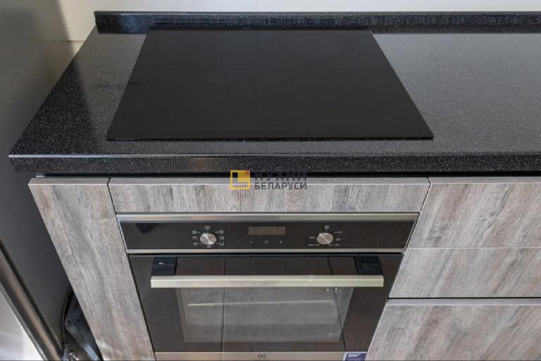 Лаконичный угловой гарнитур «ЗПДА110» в стиле лофт подойдет как для больших, так и для маленьких кухонь, квартир-студий. Фасад древесного оттенка придает атмосфере тепло и уют.